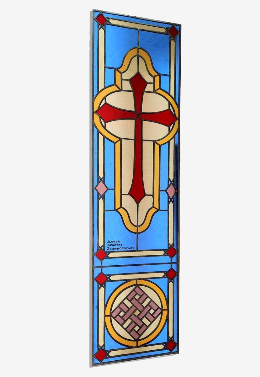 Το εκκλησιαστικό αυτό βιτρό, εμπνευσμένο από βυζαντινά εκκλησιαστικά σχέδια, αποτελεί ένα αυθεντικό χειροποίητο έργο τέχνης από τη Βιτρώ Άνασσα. Με επίκεντρο τον σταυρό – διαχρονικό σύμβολο της ορθόδοξης πίστης – και χρώματα εμπνευσμένα από τη βυζαντινή παράδοση, προσδίδει πνευματικότητα, ιερότητα και υψηλή αισθητική σε κάθε χώρο.